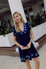 Navy V-Neck Flutter Sleeve Mini Dress